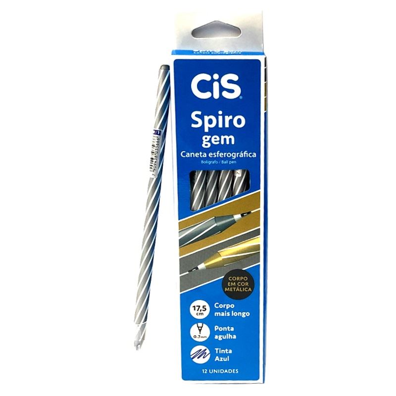 Caneta Cis Spiro Esferográfica 0.7mm 12 Unidades Prata