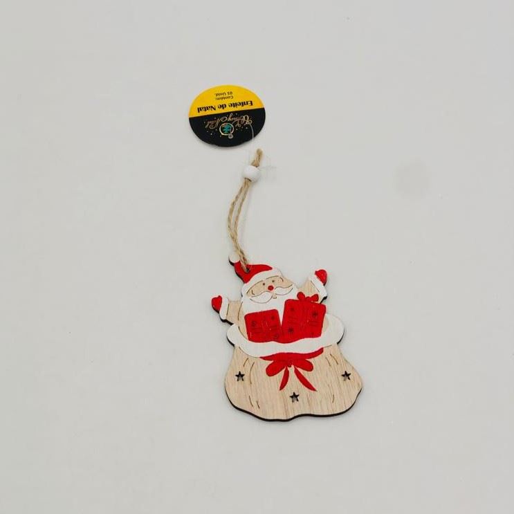 Enfeite Natalino Madeira Papai Noel Saco Natal
