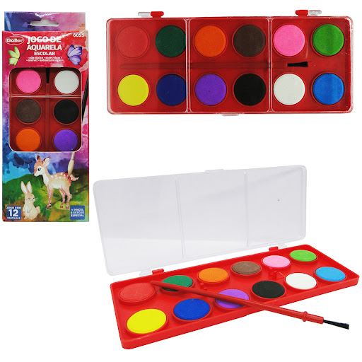 Jogo De Aquarela Escolar Goller 12 Peças